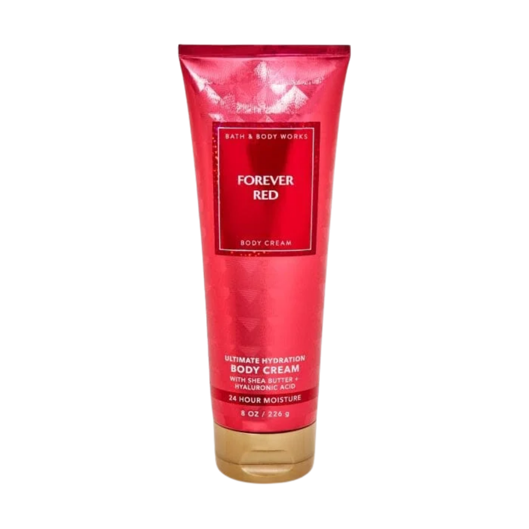 Forever Red,”Pomegranate, vanilla orchid, and creamy woods. Coconut oil-infused for bold, passionate allure.”