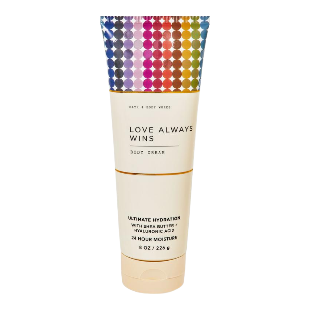 Love Always Wins,”A triumphant blend of red berries, peony, and creamy sandalwood. This empowering cream, with hyaluronic acid, hydrates and uplifts.”