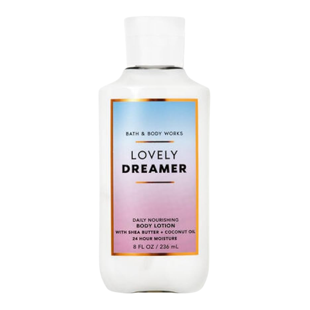 Lovely Dreamer,”Soft lavender, fluffy musk, and juicy pear. Oat extract and shea butter soothe skin and senses, making this cream perfect for bedtime relaxation.”